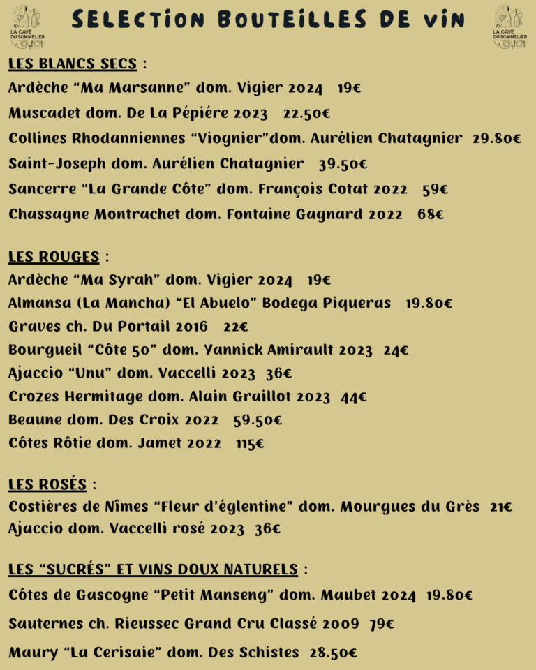 Sommelier de métier j’ai créé en 1997 « La Cave du Sommelier » après mes passages chez « André Daguin » à Auch, « Le Royal » et casino à Evian, « La Rôtisserie du Chambertin » à Gevrey, Le « Jules César » à Arles, le « Roc de Caldes » en Andorre, « La Galupe » de Christian Parra, « La Cave des Ministères » aux Invalides…………
