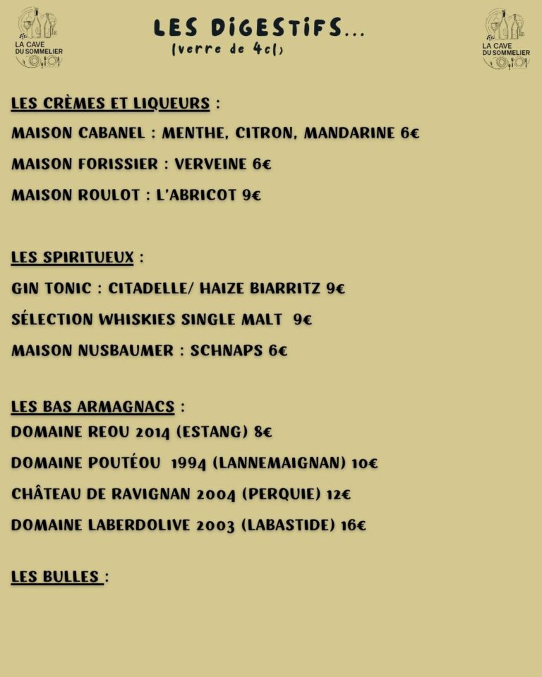 SELECTION DE VINS ET DIGESTIFS
