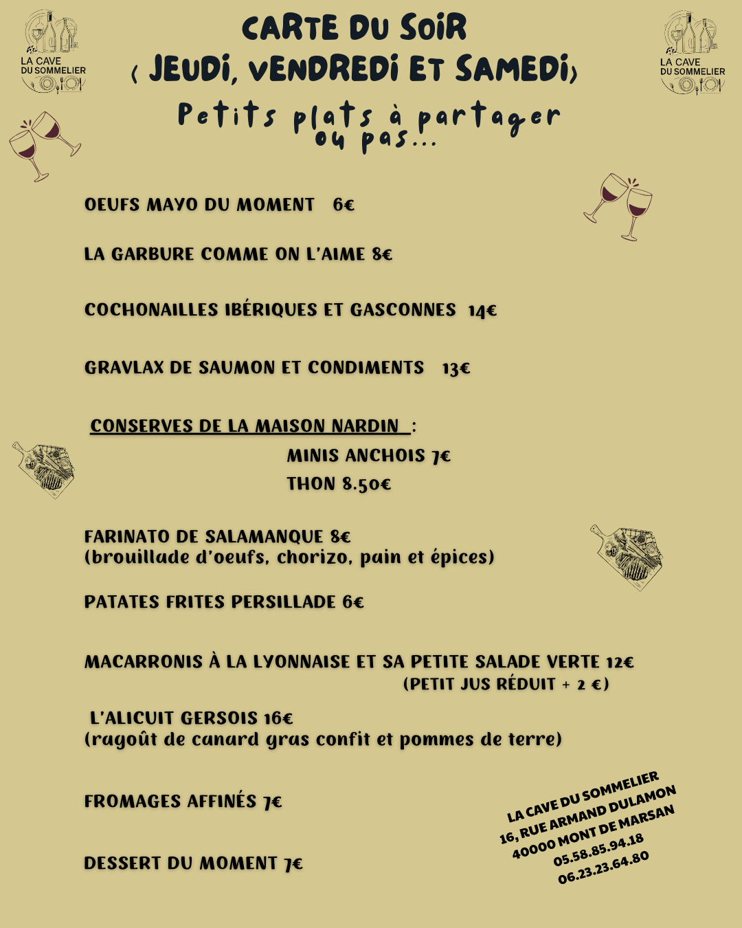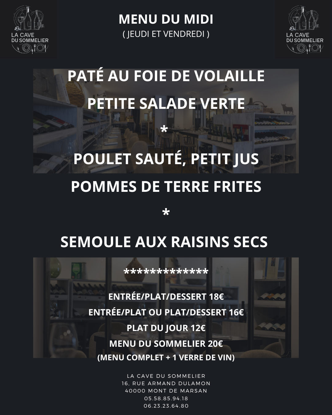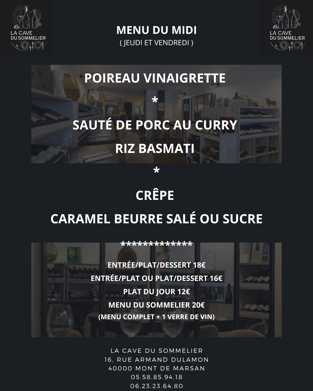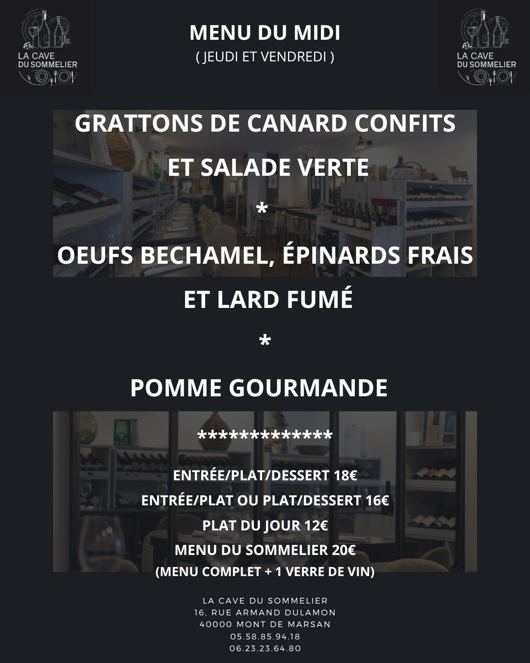 Que vous soyez amateurs de grands crus, ou en quête de nourriture raffinée et fraîche, La Cave du Sommelier vous accueille dans un cadre élégant et intimiste.